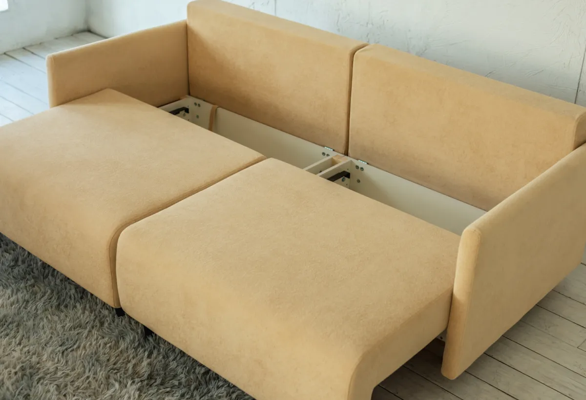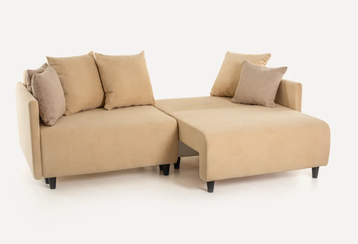 Качество, которое чувствуетсяДиван выполнен из прочных материалов: каркас из сосновых брусков и ортопедическая пружинная основа гарантируют долговечность и комфорт. Обивка из прочного и приятного на ощупь материала не потеряет форму даже через годы использования. Подушки, наполненные гипоаллергенным материалом, не сминаются и не теряют форму. А ещё их можно вынуть из чехлов и постирать — это важно, когда в доме есть дети или животные. Все детали продуманы: от надёжного механизма трансформации до лаконичного дизайна без лишних деталей.