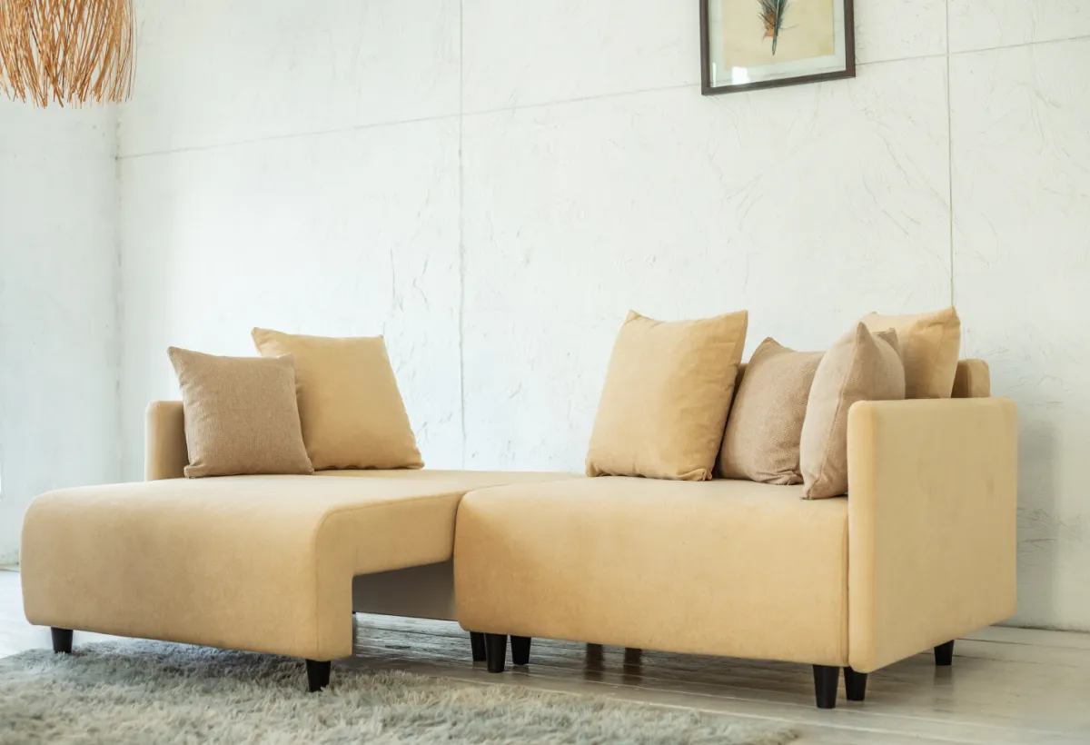 Диван, который подстраивается под васОдна из главных фишек этого дивана — его универсальность. Он состоит из двух модулей, каждый из которых оснащён механизмом трансформации. Это значит, что вы можете использовать их вместе или по отдельности, выдвигая один из модулей и превращая его в оттоманку. Такой формат позволяет легко адаптировать диван под размеры комнаты или ваши текущие нужды. А чёрный пластик на ножках не только выглядит стильно, но и выдерживает высокие нагрузки. В общем, это не просто диван — это мебель, которая растёт вместе с вами.